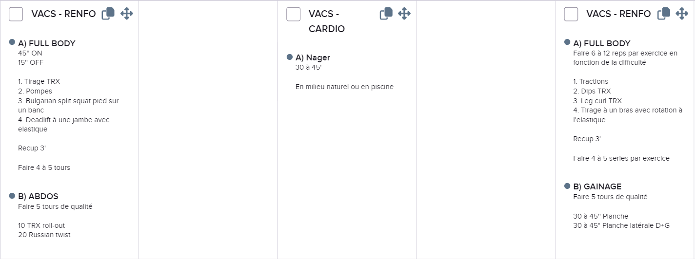 La logique, c'est de faire en sorte de continuer à s'entrainer, en prenant en compte le fait que vous êtes en vacances et que l'entrainement ne sera pas l'axe de priorité.