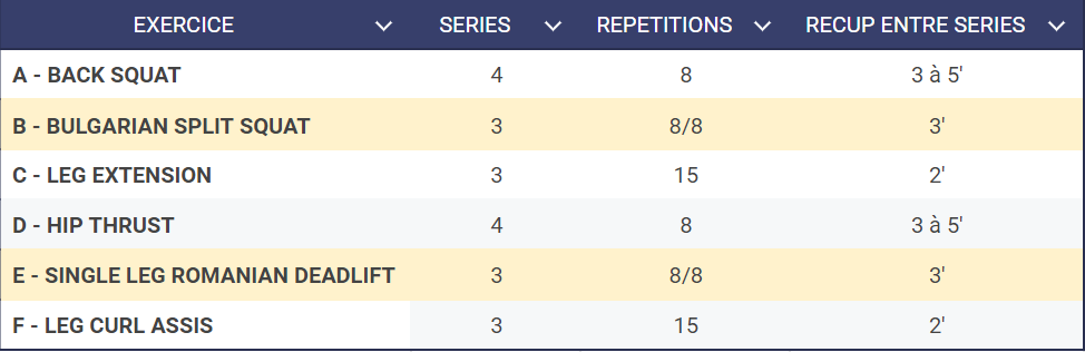 Voici un exemple de séance que j'ai l'habitude d'appliquer pour le bas du corps